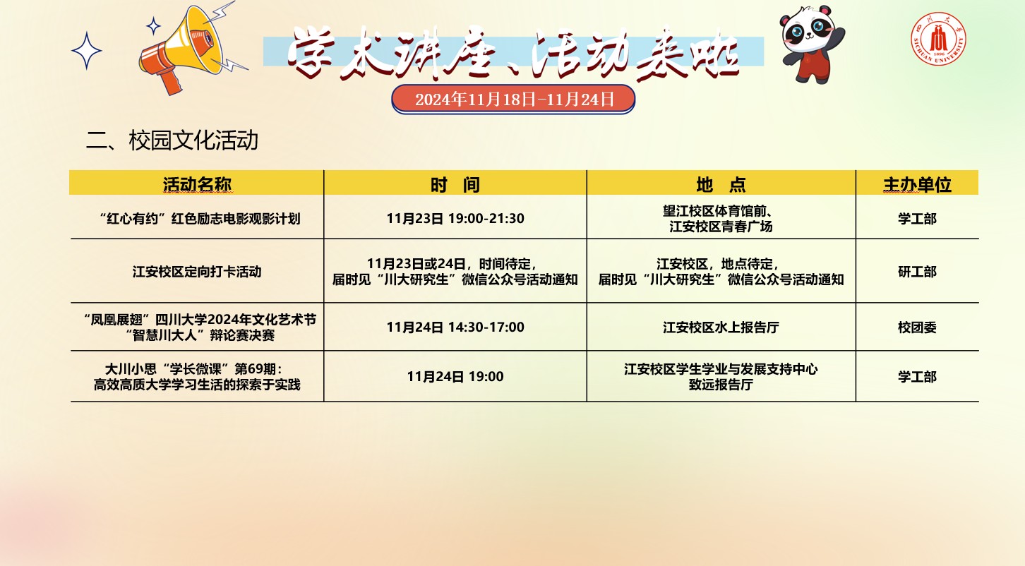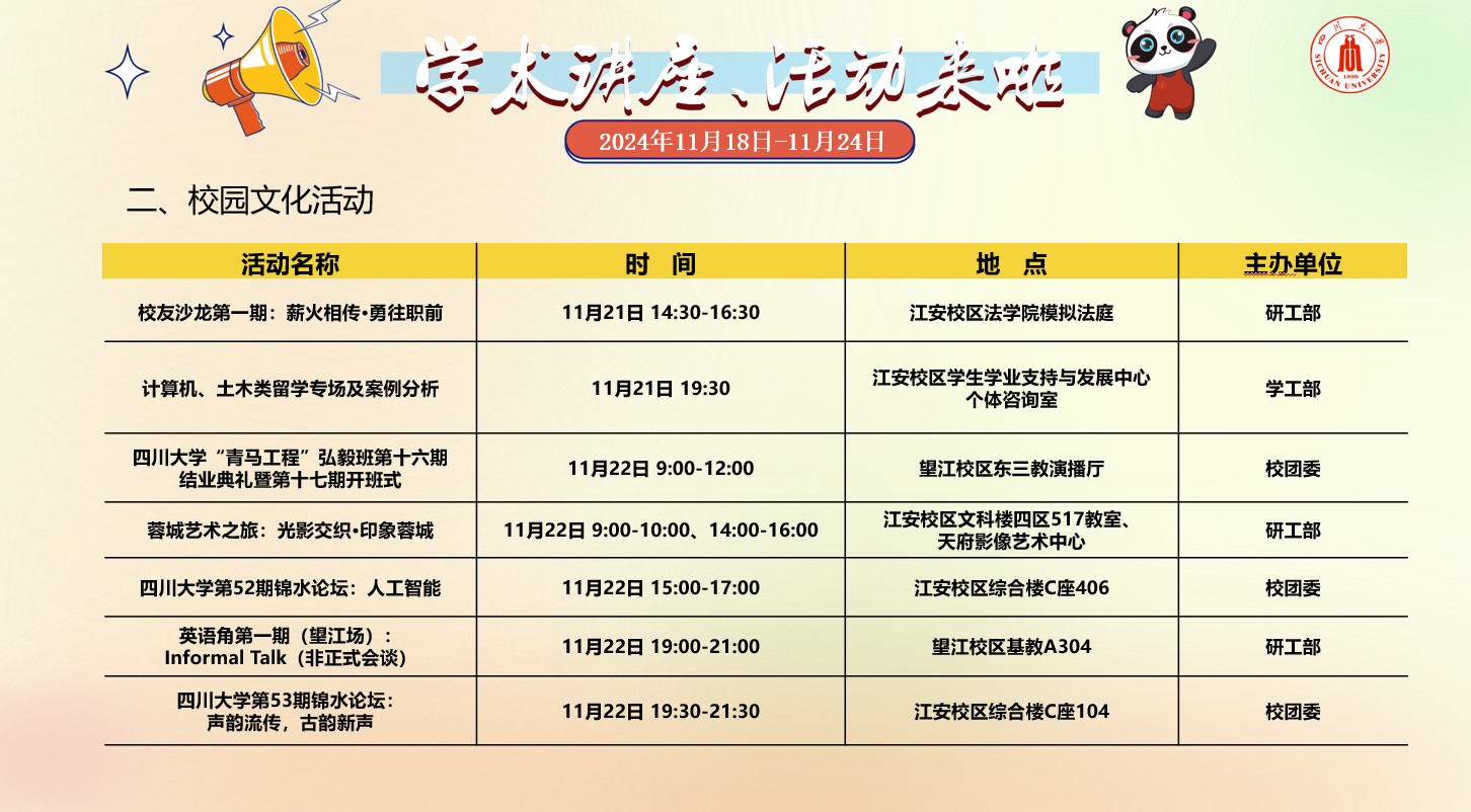 风车动漫 2024年11月18日-24日学术讲座及校园文化预告