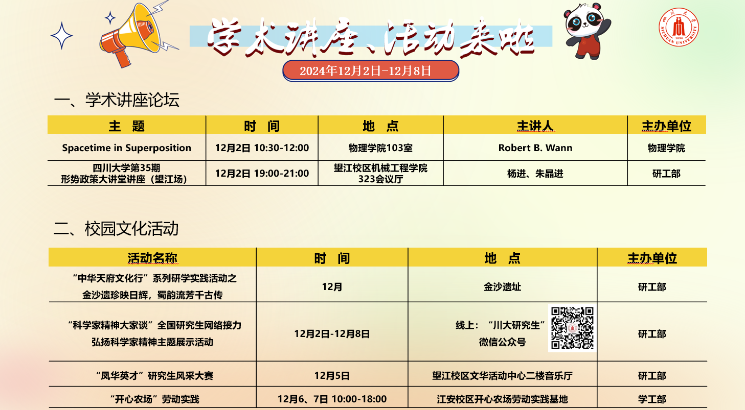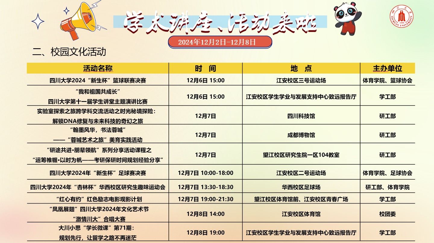 风车动漫 2024年12月2日-12月8日讲座及校园文化预告
