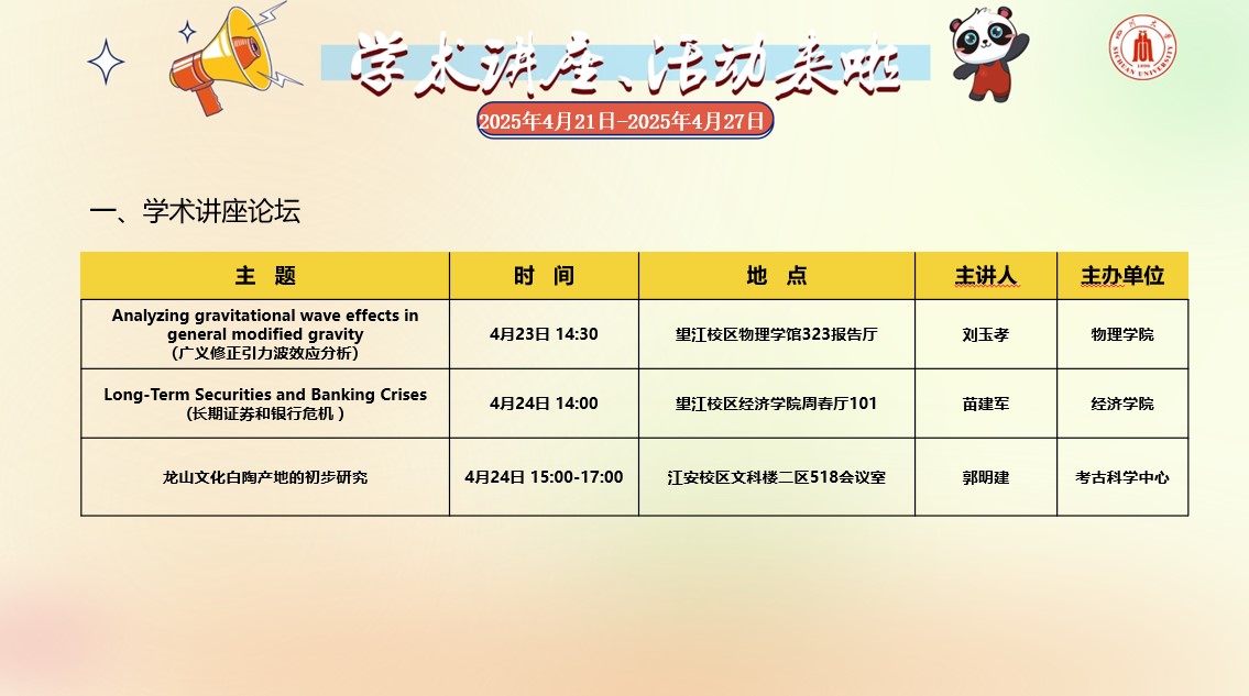 风车动漫 2025年4月21日-4月27日学术讲座论坛及校园文化活动预告