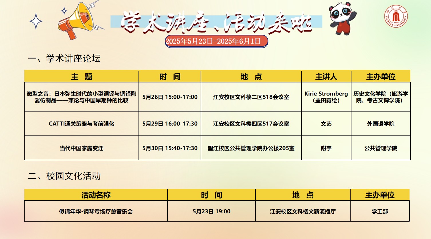 风车动漫 2025年5月23日-6月1日学术讲座论坛及校园文化活动预告