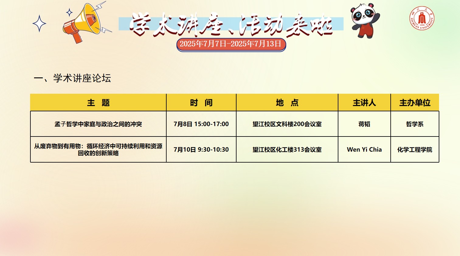 风车动漫 2025年7月7日-2025年7月13日校园文化活动预告