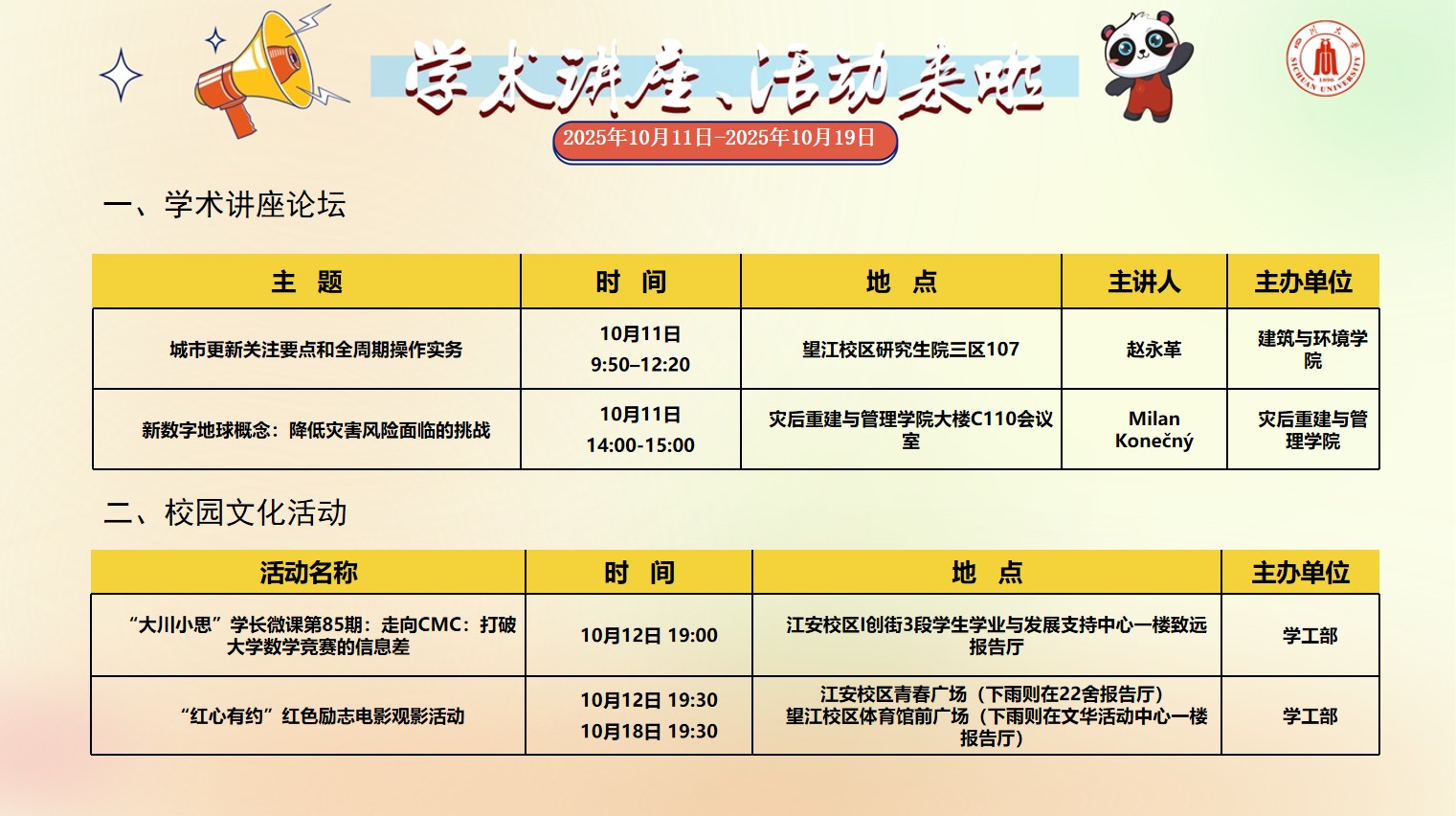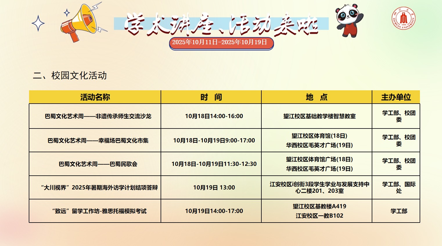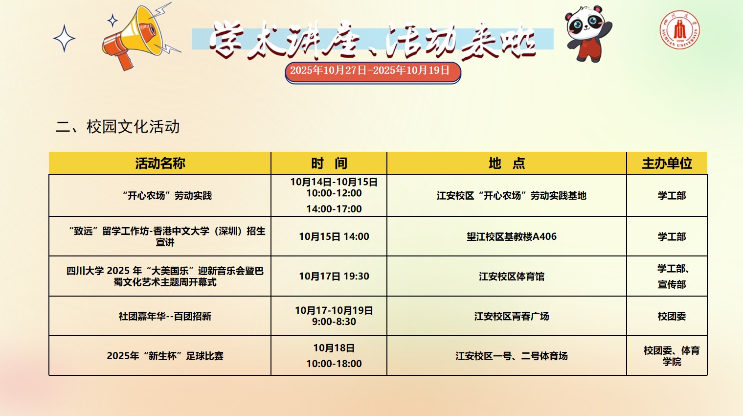 风车动漫 2025年10月11日-2025年10月19日校园文化活动预告