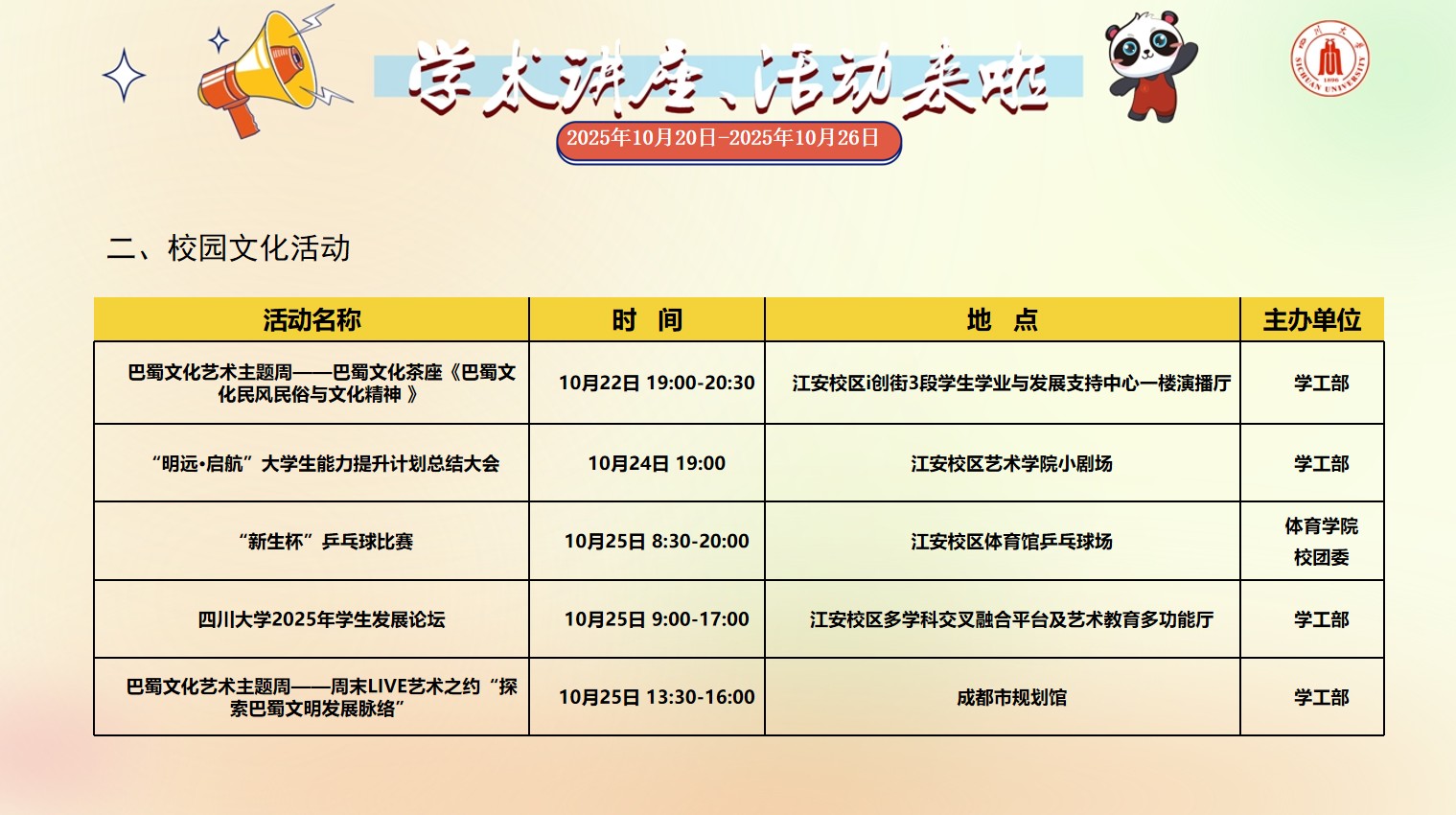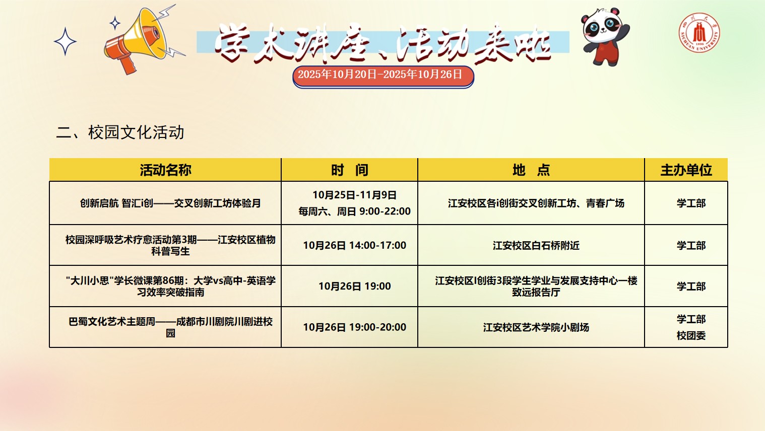 风车动漫 2025年10月20日-2025年10月26日校园文化活动预告