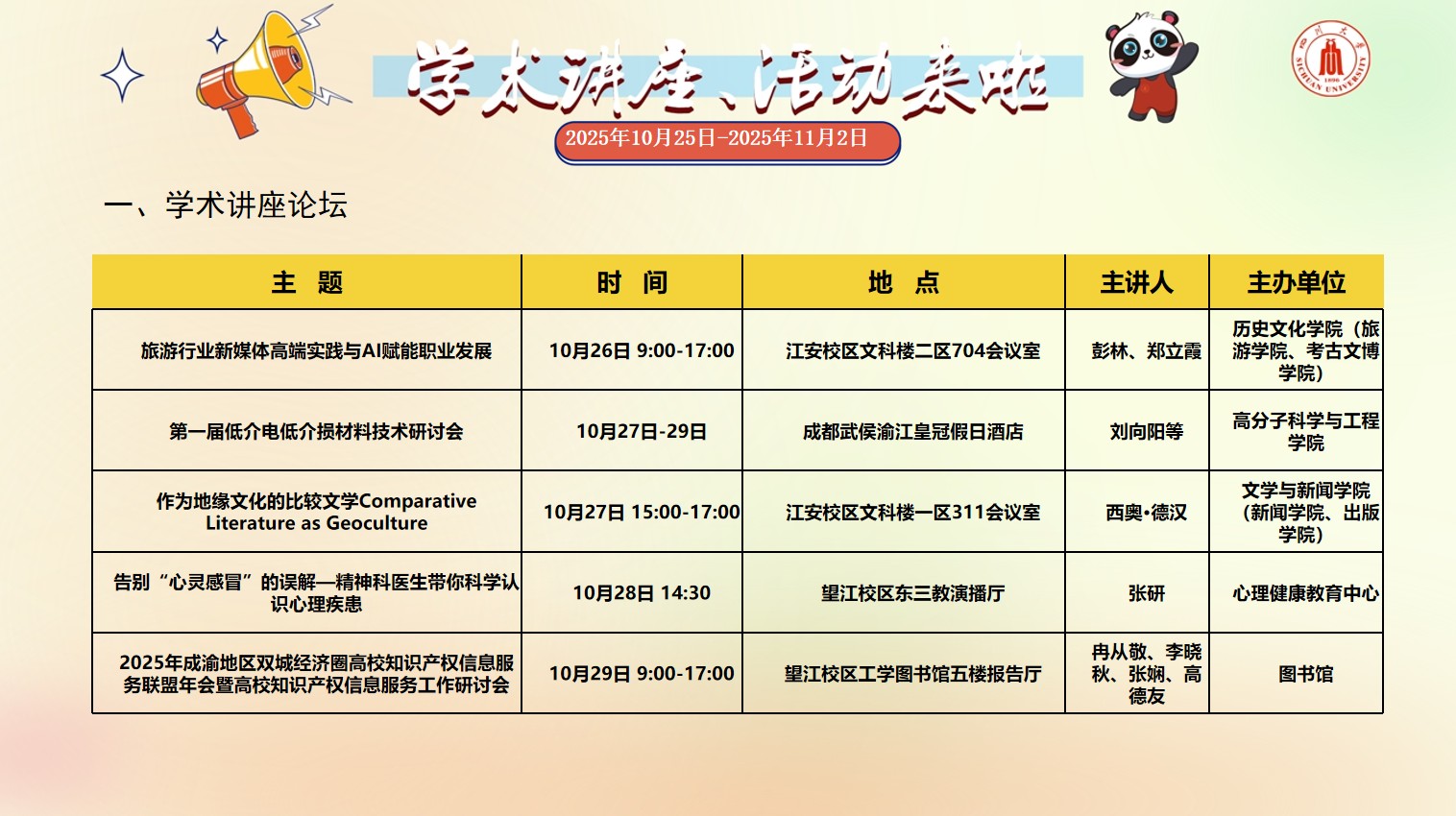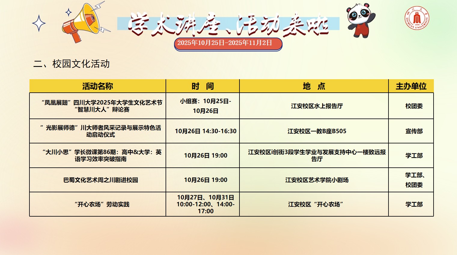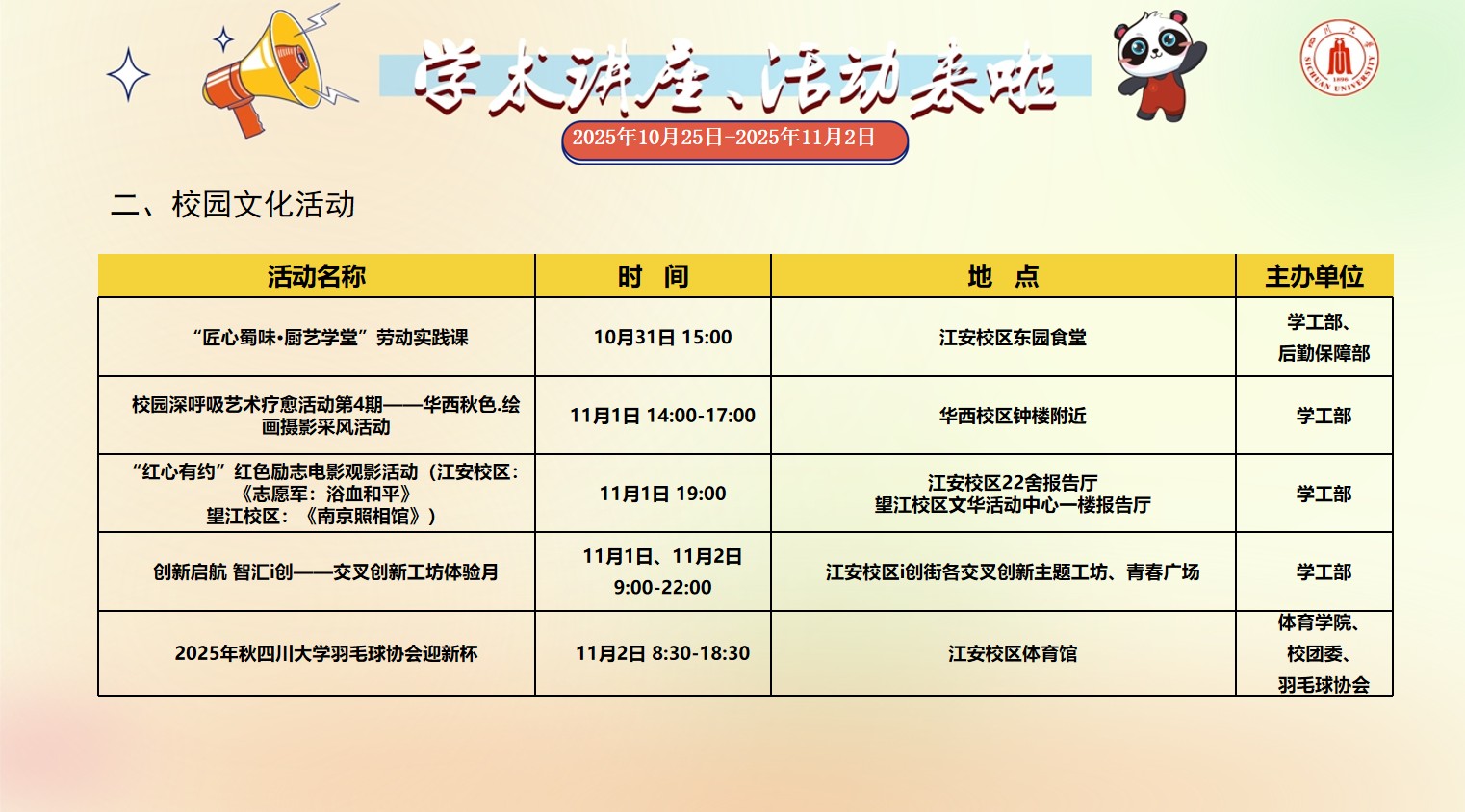 风车动漫 2025年10月25日-2025年11月2日校园文化活动预告