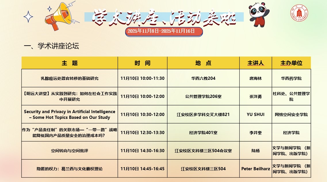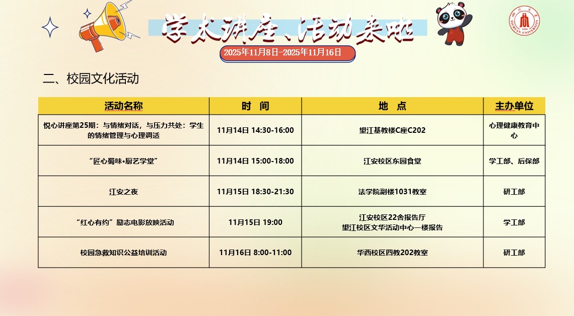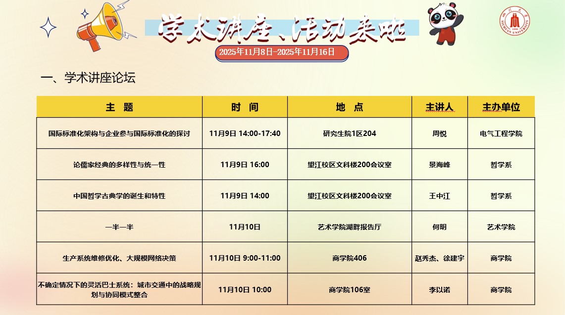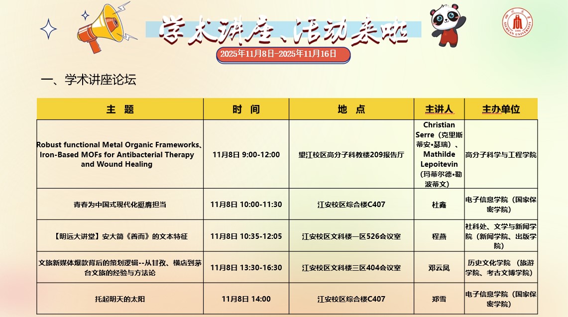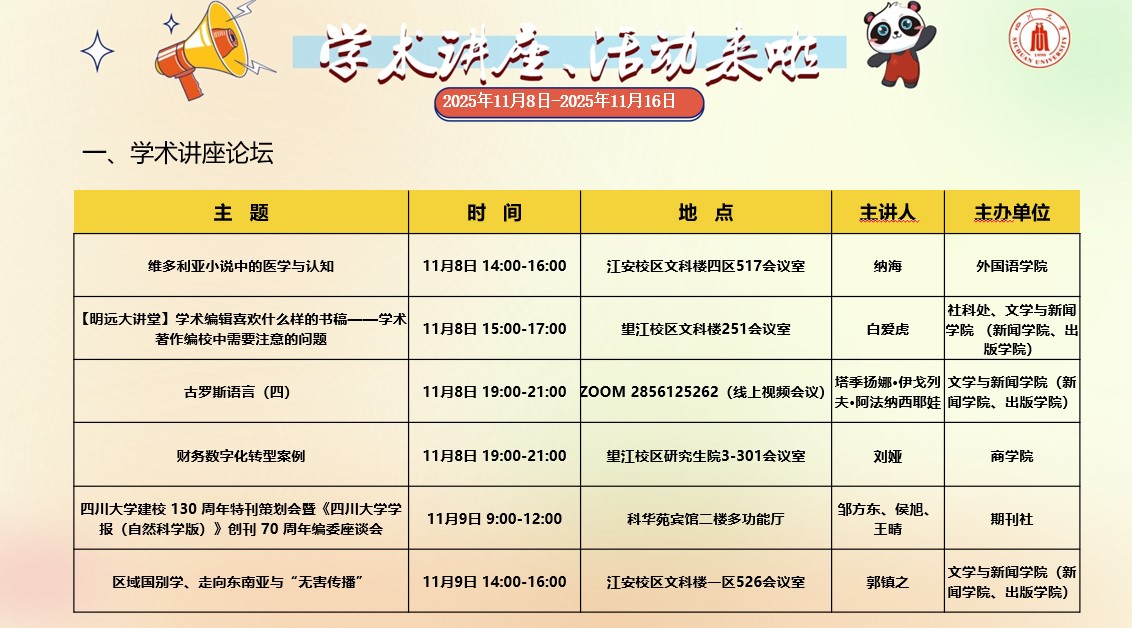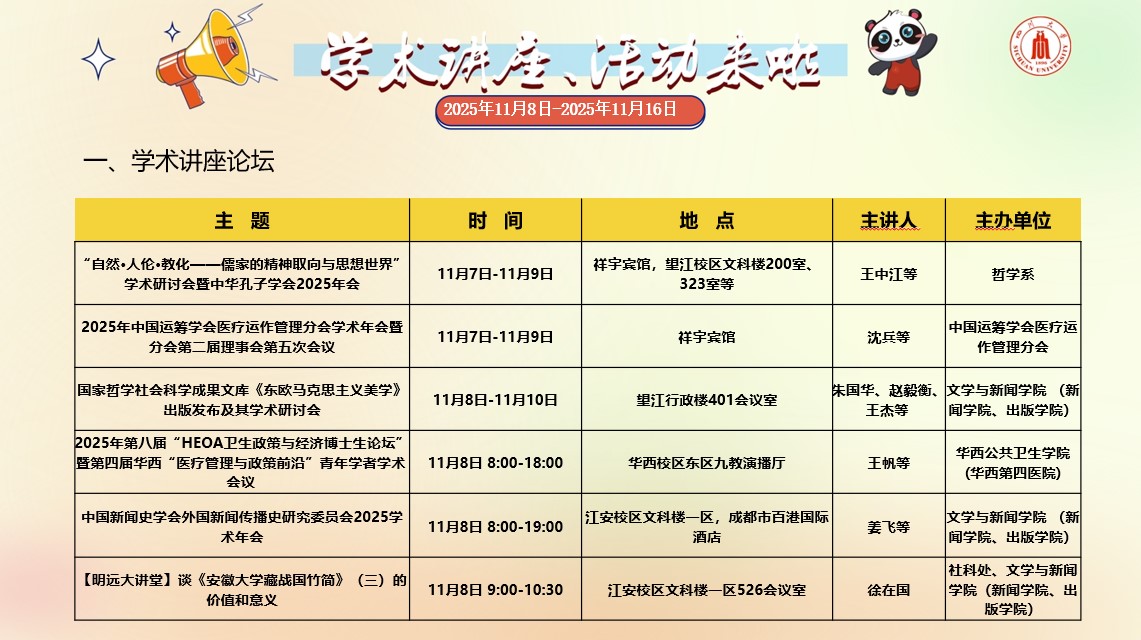 风车动漫 2025年11月8日-11月16日学术讲座和校园文化活动预告