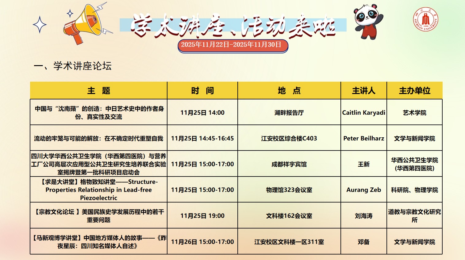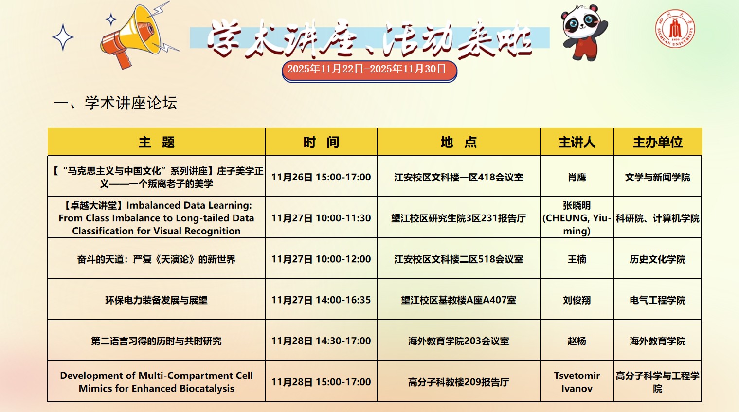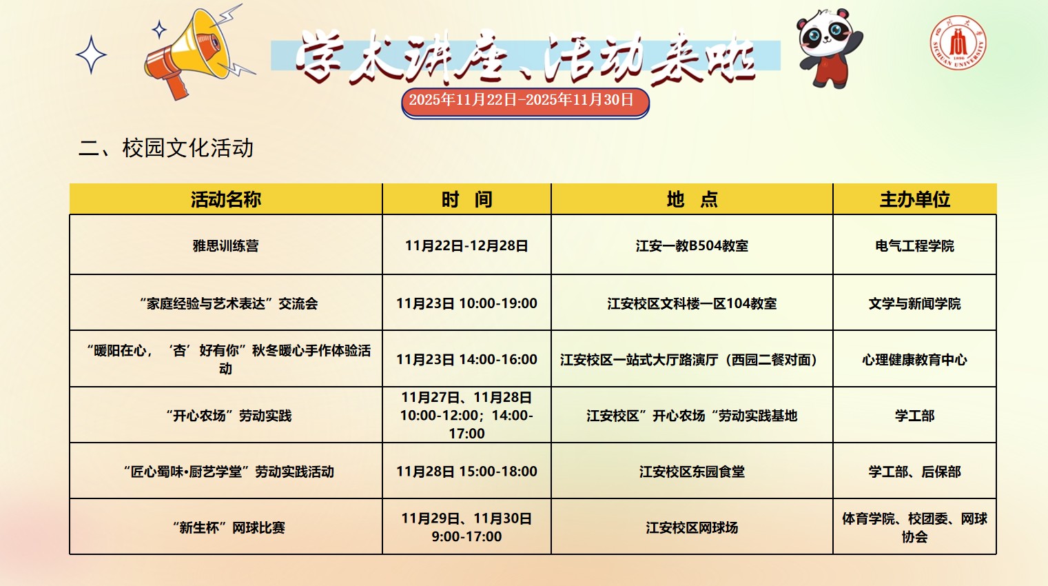 风车动漫 2025年11月22日-2025年11月30日学术讲座和校园文化活动预告