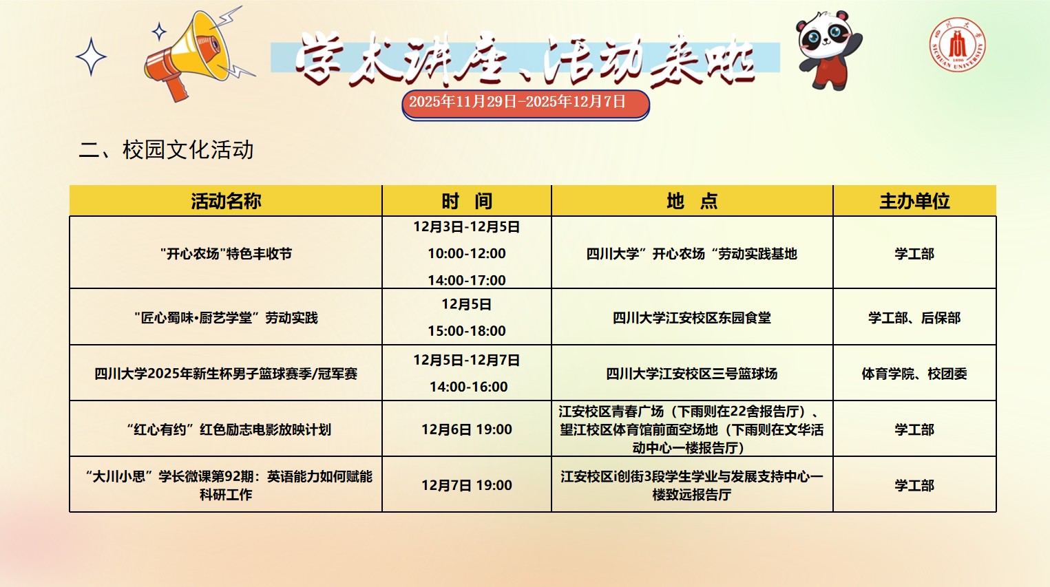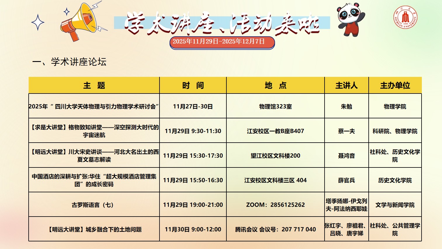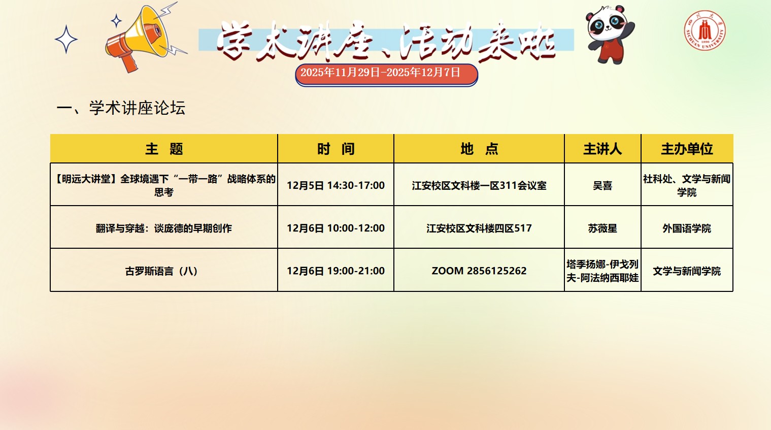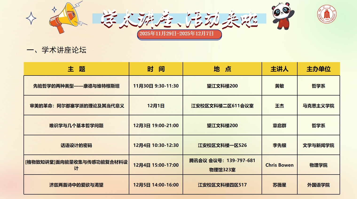 风车动漫 2025年11月29日-12月7日学术讲座和校园文化活动预告