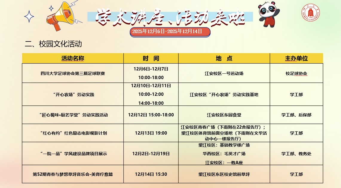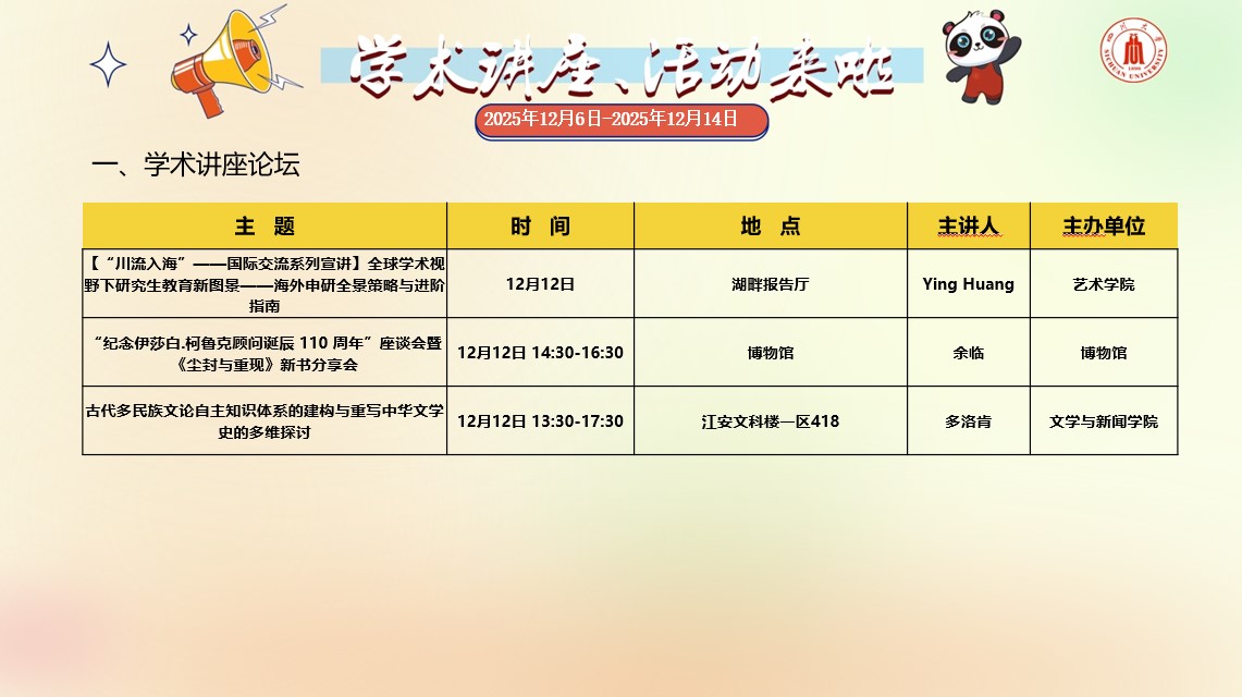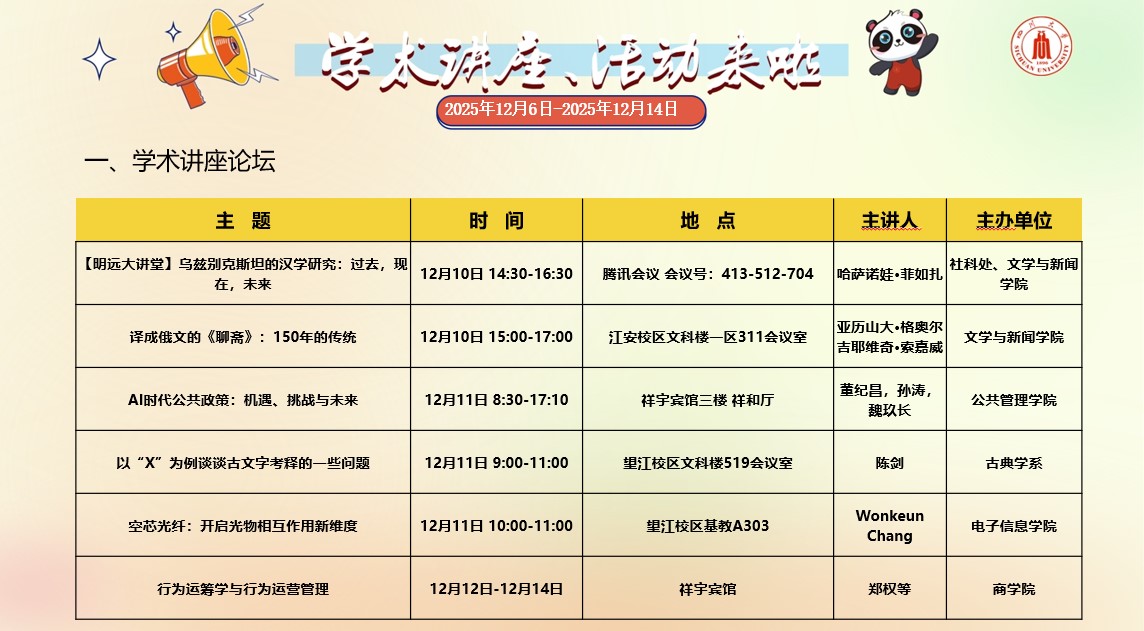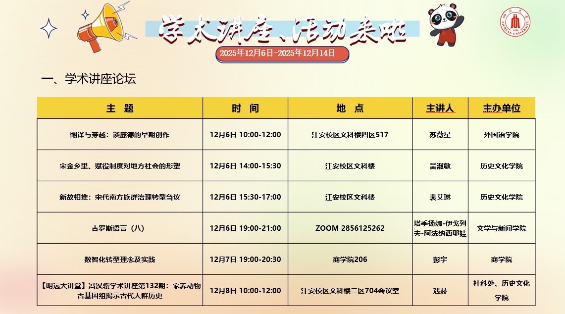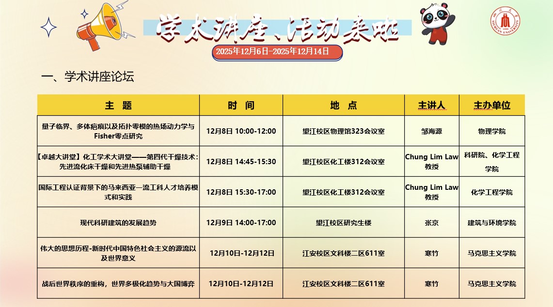 风车动漫 2025年12月6日-2025年12月14日学术讲座和校园文化活动预告