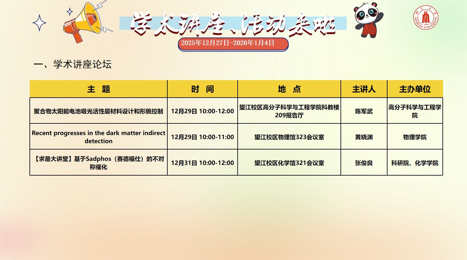 风车动漫 2025年12月27日-2016年1月4日学术讲座和校园文化活动预告