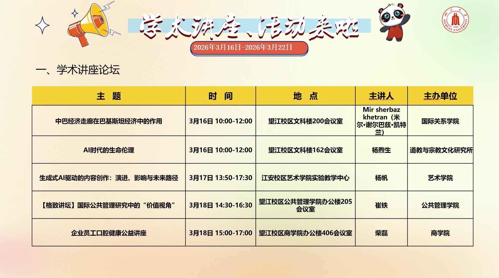 风车动漫 2026年3月16日-2026年3月22学术讲座预告