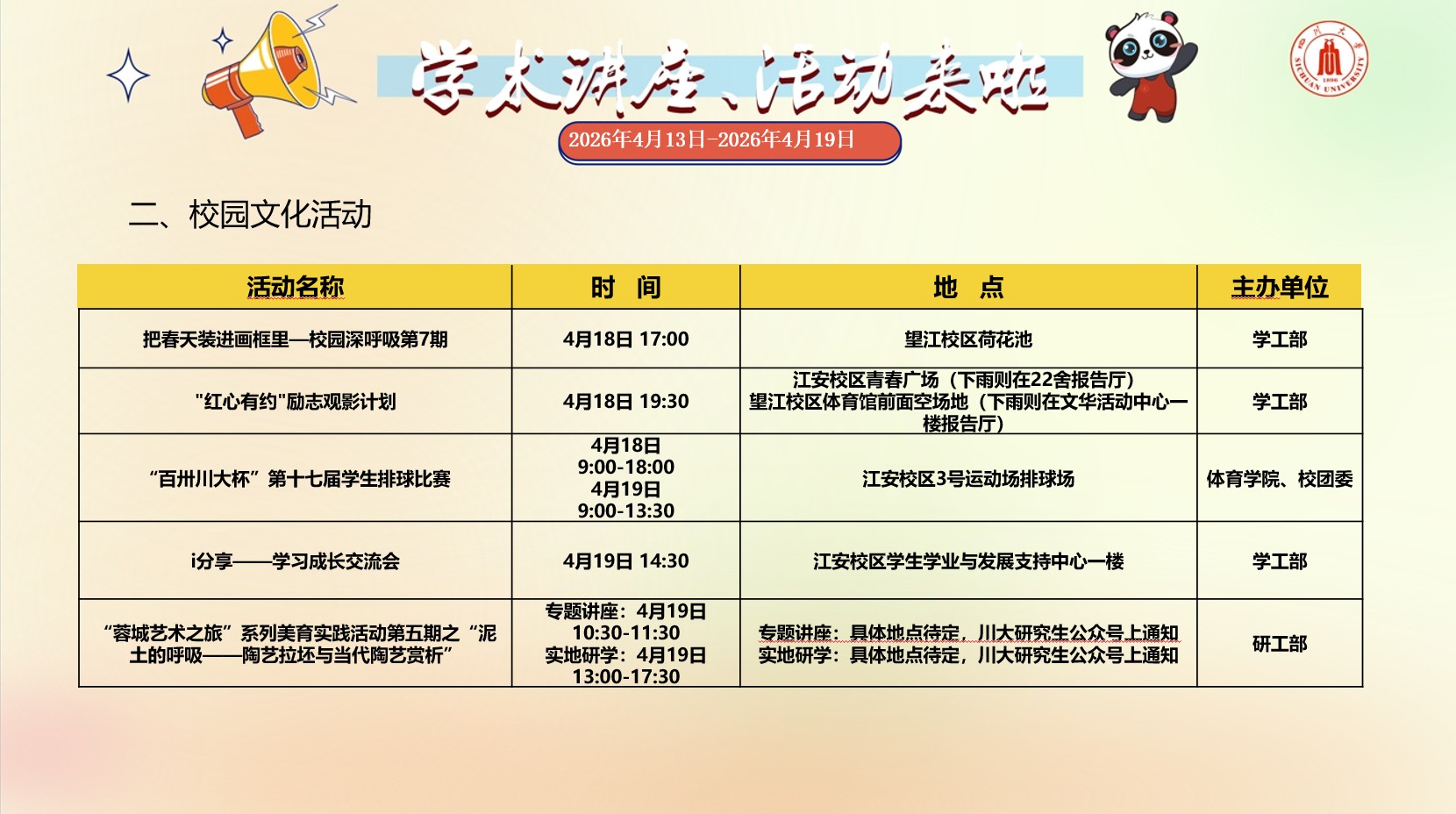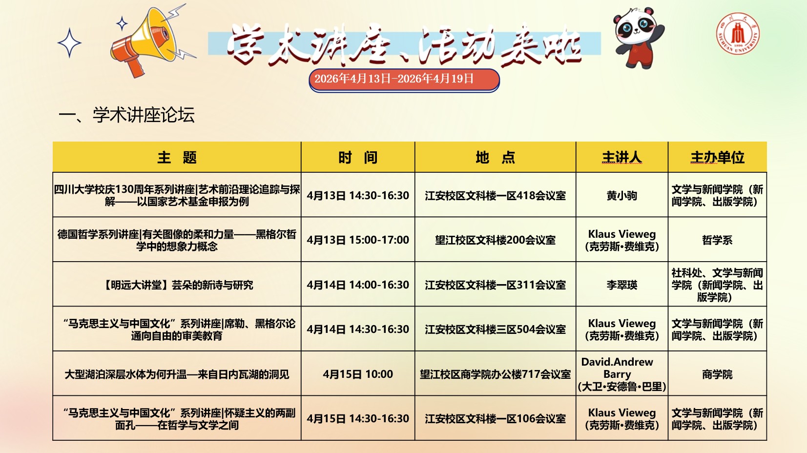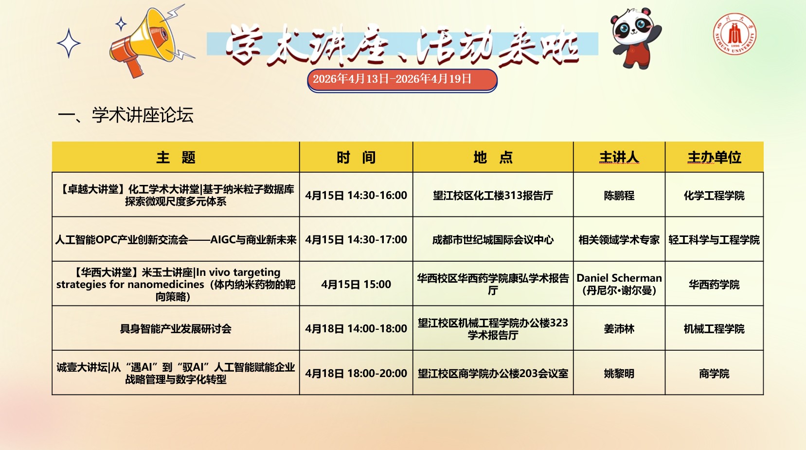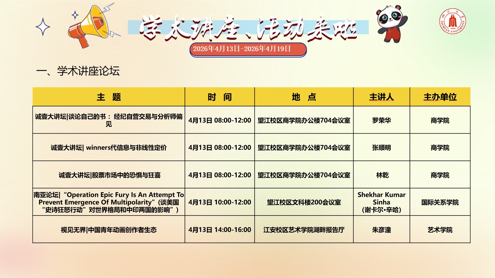 风车动漫 2026年4月13日-2026年4月19日学术讲座预告
