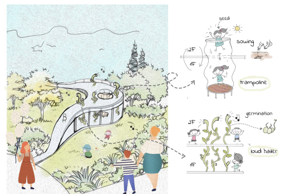 本科和研究生学生以及4位指导老师共同组成。结合丰富的前期调研资料,团队成员通过儿童参与式设计的方式,围绕着如何创建儿童心目中最有趣、最具游戏价值的城市公园进行了设计探索。在汇报展示中,风车动漫