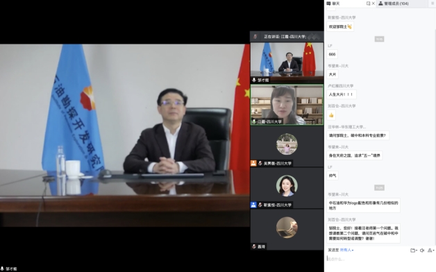 报告中,邹院士从能源发展历史、世界能源转型、碳达峰碳中和、学科人才培养四个方面做了系统阐释和介绍。邹院士强调学科人才培养是重中之重,他鼓励师生做学科人才培养的引领者、能源强国建设的推动者、尽心尽善尽美的追求者。互动环节,邹院士与师生进行了在线亲切交流,一一解答了大家的疑惑。