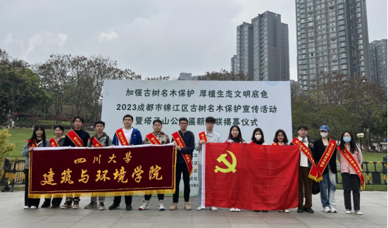古树添新绿,文明唤新风。为深入学习贯彻习近平生态文明思想,全面提升古树名木保护的社会认知度和参与度,充分发挥党员同志的先锋模范和带头引领作用,引导全社会争做爱绿、护绿的宣传者、践行者和推动者,3月28日上午,学院研究生一年级一支部、中共成都市锦江区城市有机更新事务中心支部委员会(以下简称“锦江区城更中心”)在锦江区塔子山公园西广场开展“不负一树年轮,厚植生态底色”古树名木保护主题宣讲志愿服务活动。锦江区城更中心、兴锦文旅的负责人,塔子山幼儿园老师及大班学生,以及两个党支部的党员共同参与活动。