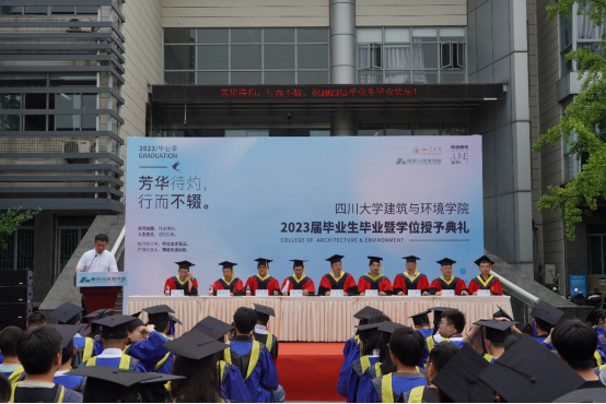 6月26日,学院2023届毕业生毕业暨学位授予典礼在江安校区建环楼前广场隆重举行。学院党委书记华国春,院长戴峰,副书记王晖,副院长刘敏、李沄璋,土木系主任戴靠山,建筑系主任赵炜,力学科学与工程系主任刘永杰,环境科学与工程系副主任杜烨,毕业班辅导员王天泽、赵梓丞、周琦颖、刘芸出席典礼。典礼由学院党委副书记兼纪委书记孙伯雷主持。