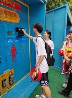 随后,参观了传统式建筑工程实训中心。从砖混结构、砌体结构等传统建造工艺到预制装配式围墙、预制柱、预制板等前沿技术,老师进行了对比介��工程千千万,安全第一条。在老师不失幽默的安全教育讲解下,同学们积极思考,也踊跃尝试�