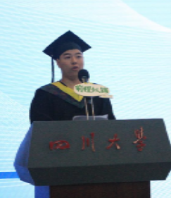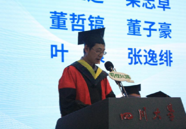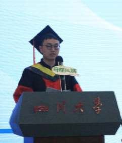 力学系博士毕业生舒敬恒作为研究生代表发言。他指出,过去,同学们在知识的海洋中乘风破浪,掌握科学的力量。未来,同学们将在时代的浪潮中昂首挺胸,传承民族的精神,为国家的繁荣富强添砖加瓦�