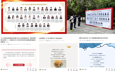 充分发挥优秀学子示范引领作用,开展以“榜样领航·学风共筑”为主题的“2023-2024学年本科生国家奖学金获得者先进事迹展”,以榜样力量涵育优良学风。事迹展聚焦34位国奖得主的“硬实力”与“软力量”,充分展示了学院学子德智体美劳全面开花欣欣向荣的生动图景。本届国奖获得者均是班级学习帮扶小组的重要组成成员,为班级学风建设作出贡献。学院“建环小筑”微信公众号同期发布先进事迹系列推送并推出“21天筑梦打卡挑战”和“建环er奋斗的一天短视频征集”活动,邀请学院学子与榜样“同频”制定学习计划,记录自己或身边同学奋斗拼搏的身影。