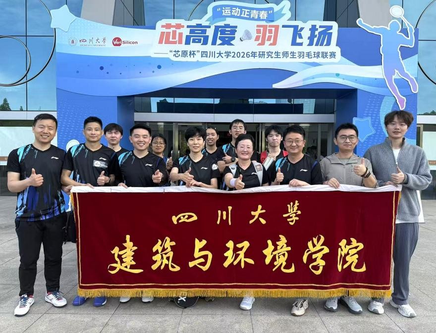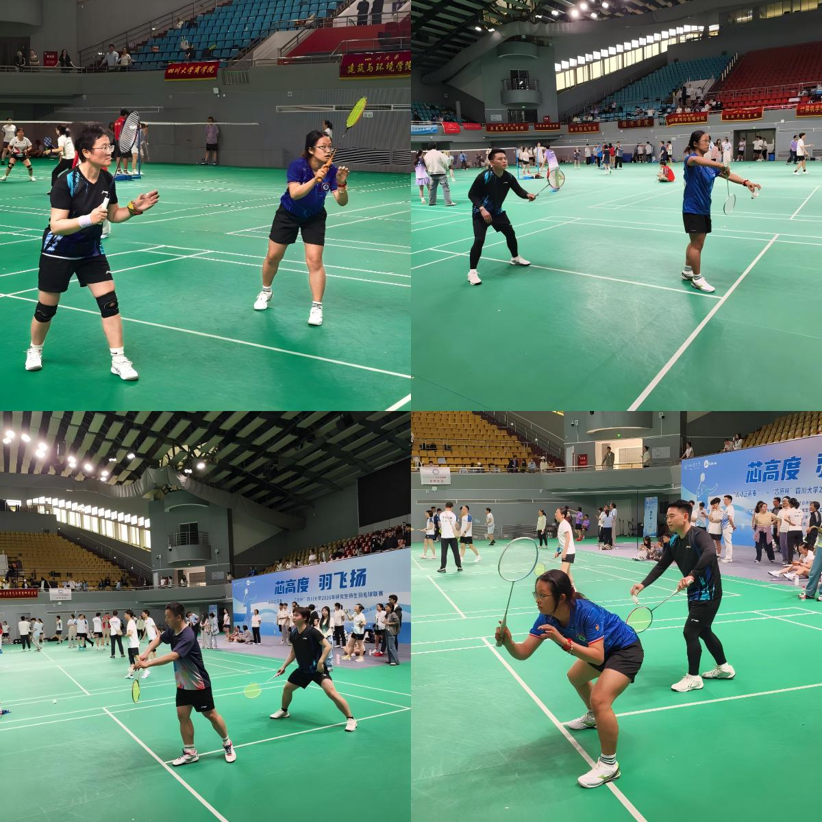 “运动正青春”——“芯原杯”2026年研究生师生羽毛球联赛在望江校区体育馆举行。由杨胜担任领队,欧阳金龙担任教练,董娜、王倩娜、盛超、梁林、钟声5位教师及王秋芷、杨庆煜、郭丰毓、陈思、李宜洋5位学生组建师生联队参赛,最终获得16强成绩。
