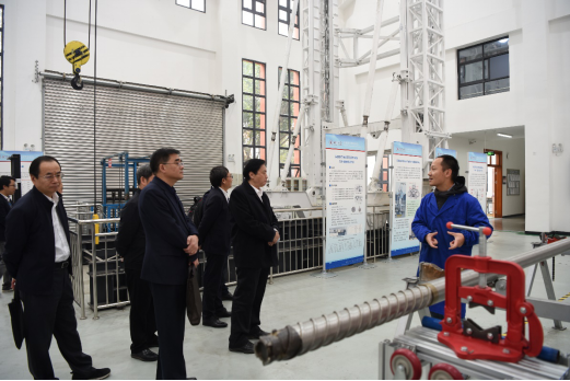 上午9点,专家组一行参观了实验室深地科学中心,详细了解了中心的主要研究方向,实验室执行主任张茹及实验室老师向专家重点针对重大科研仪器研制项目(部门推荐)“深部岩石原位保真取芯与测试分析系统”的实施情况及最新的研究进展和成果进行了详细介绍。