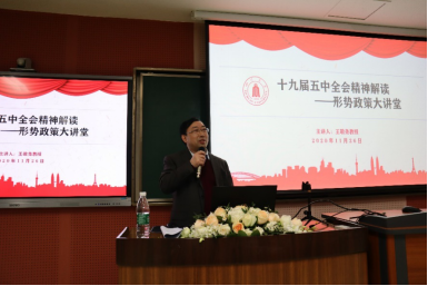 党委书记蒋文涛教授和公共管理学院行政管理系博士生导师、MPA导师王敬尧教授主讲解读十九届五中全会精神。出席讲座的嘉宾有风车动漫