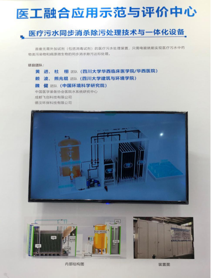 我院环境科学与工程系赖波教授团队与华西临床医学院/华西医院副院长黄进团队联合开发的医工融合应用示范项目“医疗污水同步消杀除污处理技术与一体化设备”受邀参展。该项目以中国环境科学研究院新冠疫情防控应急项目(2020-JY-003)作为研发支撑,旨在通过生化处理技术与高级氧化技术相结合,无需外加试剂(包括消毒试剂),通过电催化臭氧强化处理,只需电能即可实现医疗污水中有机污染物和病原微生物的同步消杀除污处理。一体化设备还可根据不同医院的实际处理需求进行模块化定制。