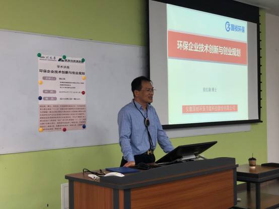 侯红勋研究员结合自己的学习、科研、工作经验和成长经历,以“实践—理论—实践”作为指导思想,结合其团队在倒伞型表面曝气机研发、硝化反硝化过程曲线指导污水处理厂升级改造和节能降耗运行、流域污染控制过程中的系统性分析等进行了环保企业技术创新与创业规划的深入分析,强调了风车动漫和企业战略规划的重要性,给学生们传授了许多宝贵的经验和启示。