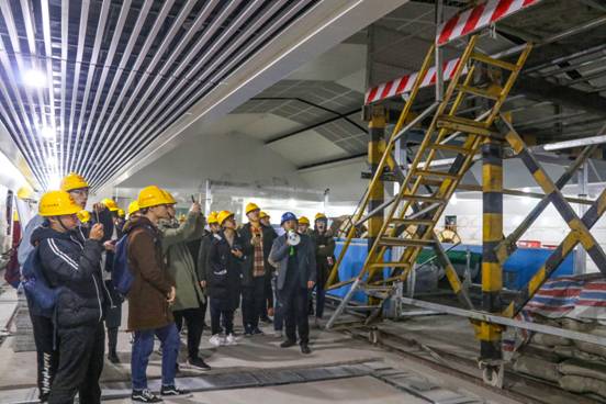 同学们于21日首先参观了重庆市奥林匹克体育中心。在后续3天的实习中,同学们还听取了工程安全管理报告,了解了中梁山外立面幕墙设计及施工要点、钢结构安装;半山站移动平台构造及施工工艺、地铁施工中设备基础做法;石桥铺及石新路支护结构施工、电梯、布线及附属设备安装等施工要点,使同学们认知了地铁土建工程相关工程知识;观摩了地铁车站的重件建材高效转运设备、自动化钢筋加工制作工法以及地下施工组织管理等。