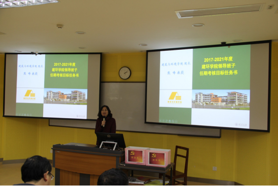 熊峰院长重点介绍了学院与学校签订的2017-2021年领导班子任期目标任务书的情况。任务书共两大部分,第一部分为推进党的建设新的伟大工程,第二部分为建设世界一流大学新的伟大事业,具体包括党的建设、师资队伍建设、人才培养、科学研究、学科建设、国际合作交流、实验室建设、招生就业、校友工作与社会服务及特色项目等部分内容。会上,熊峰院长详细介绍了学院未来几年里需要完成的目标与面临的挑战,同时对学校政策上的变化做了重点说明。熊峰院长指出,学校政策的这一系列变化都是服务于建设世界一流大学新的伟大事业的,学院为响应并适应学校的变化,强化教职工考核意识,对年度考核方案也进行了修改,以顺应学校的要求。她强调,学院教师一定要及时转变观念,不断提升自我,顺利推进学校“伟大工程”与“伟大事业”步伐。会上,熊峰院长还公布了领导班子成员就9大目标任务的分工情况。