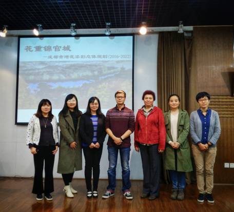二楼报告厅进行了主题为“花重锦官城—成都市增花添彩总体规划”的讲座。讲座由建筑系副系主任毛颖老师主持,来自成都市风景园林学会大专院校联络处的任英、叶玲以及风景园林教研室的陈一、王霞、王倩娜等多位专家和老师莅临讲座。