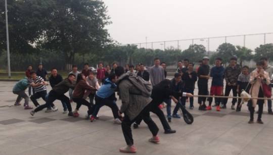 活动正式开始前,所有师生集体合影留念。最先开始的是拔河项目,大二、大三、大四及硕博师生各组成共四支队伍相互竞争,在团队的默契配合、不懈拼搏下,最终大四的学生联队获得了本项目的冠军。