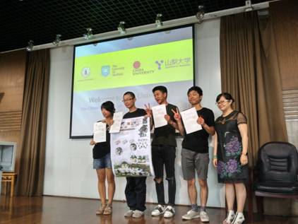 7月11日13:30,建环学院中英日风景园林交流营联合设计终期汇报在江安校区学院二楼学术报告厅举行。英国谢菲尔德大学Helen Woolley教授、刘孝仪讲师,日本千叶大学木下勇教授,建环学院建筑系副主任毛颖老师、沈一教授、罗言云副教授、王霞老师、王倩娜副研究员,及此次中英日风景园林交流营的全体中外学生。本次交流营把中英日学生分为六个小组,每个小组在前期场地调研、中期汇报之后,在前期成果的基础上,对所选场地的儿童户外活动空间展开了研究设计,并以竞赛的形式进行。
