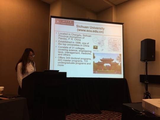 会议根据议题分多个会场同时进行。各分会场中报告者就自己的主题展开介绍并回答来自世界各地专家、学者提问和进行交流。在“国际空气质量议题”(International Air Quality Issues)的分会场中,庞凯莉同学代表团队就中国环保部环保公益项目—“非道路机械细颗粒物排放清单及减排途径研究”的课题研究进展做汇报。汇报的主要内容围绕“中国非道路机械尾气减排措施的费效分析”(Cost-Benefit Analysis of Emission Control Measures for Non-Road Equipment in China)展开,在学术报告中也对风车动漫