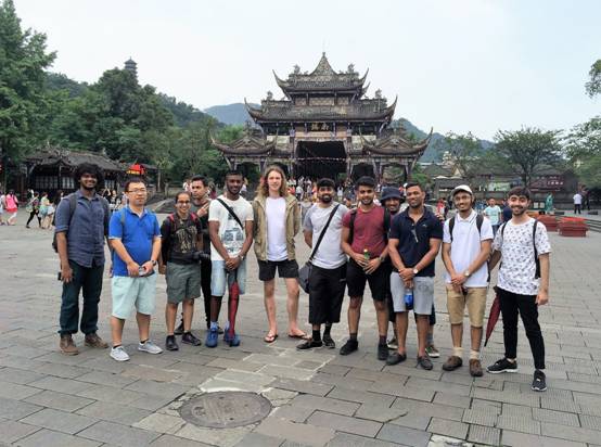 抵达都江堰大坝时,师生们都被都江堰的雄伟所吸引,所有人都被眼前那连绵的青山以及飘渺在山峦间的云雾所吸引;而当步入都江堰景区,经过飞沙堰、对望宝瓶口、抵达鱼嘴、走过安澜桥,这种被美丽景色的吸引逐渐被对古人聪明才智的折服取代。不同国家的同学了解了宝瓶口如何形成、知道了何为“四六分水、二八分沙”,无不感叹中国古代劳动人民的聪明才智,在一个缺乏机械设备和相关材料的时代建立一个如此伟大的工程;更惊讶于这一不畏艰险成功完成的壮举,历经2000余年,使成都平原成为一个名副其实的“天府之国”。