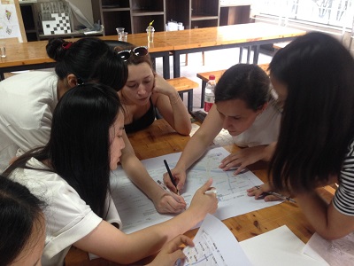 首先进行分享的小组是调研老城区石油小区的成员,他们用生动有趣的语言让大家体会到这个建于570年代的空间环境和建筑特色,而他们准备最后的成果用连环画的形式展示也让人耳目一新。接下来,法国的两位教授ManolaAntonioli和Laurent Marie对他们的调研成果进行点评,肯定了一部分,也对部分提出了建议,使他们更加明确、有目的的展开接下来的工作。