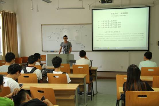 各年级辅导员在形教课期间向同学宣传大学生征兵入伍相关政策,同时由国防生同学向大家讲解部队相关情况。下图为2013级辅导员王天泽老师形教课期间向同学们宣传大学生征兵入伍: