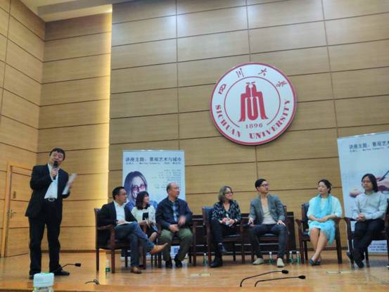 讲座结束后,副院长周波教授、四川省景观设计院高静院长、西南设计院副总建筑师刘艺、成都市奥本辛斯设计公司总裁罗燚、西南交通大学等高校教育代表受邀登场,与大师面对面交流,针对城市文化在场地肌理中的复兴,设计单位的城市责任感以及景观教学等方面进行了探讨和交流。玛莎教授幽默风趣,深入浅出的讲述了自己的景观感悟,让在座的听众又一次享受了精神大餐。