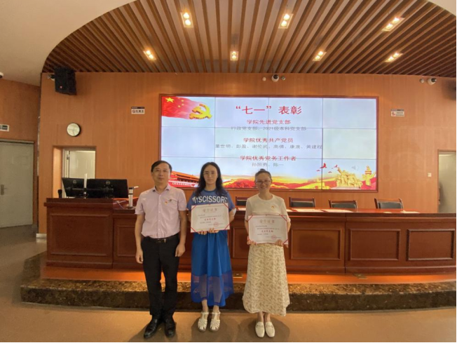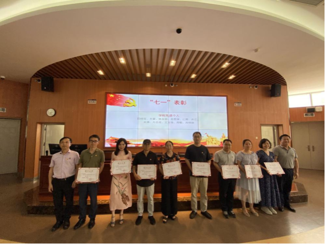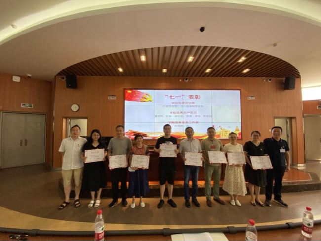 随后,会议对学院2个先进党支部、6名优秀共产党员、2名优秀党务工作者和11名先进个人进行了表彰。学院党委副书记王晖宣读了学院表彰决定,并向受表彰的先进集体和个人表示祝贺。学院领导为获奖单位和个人颁发奖状。