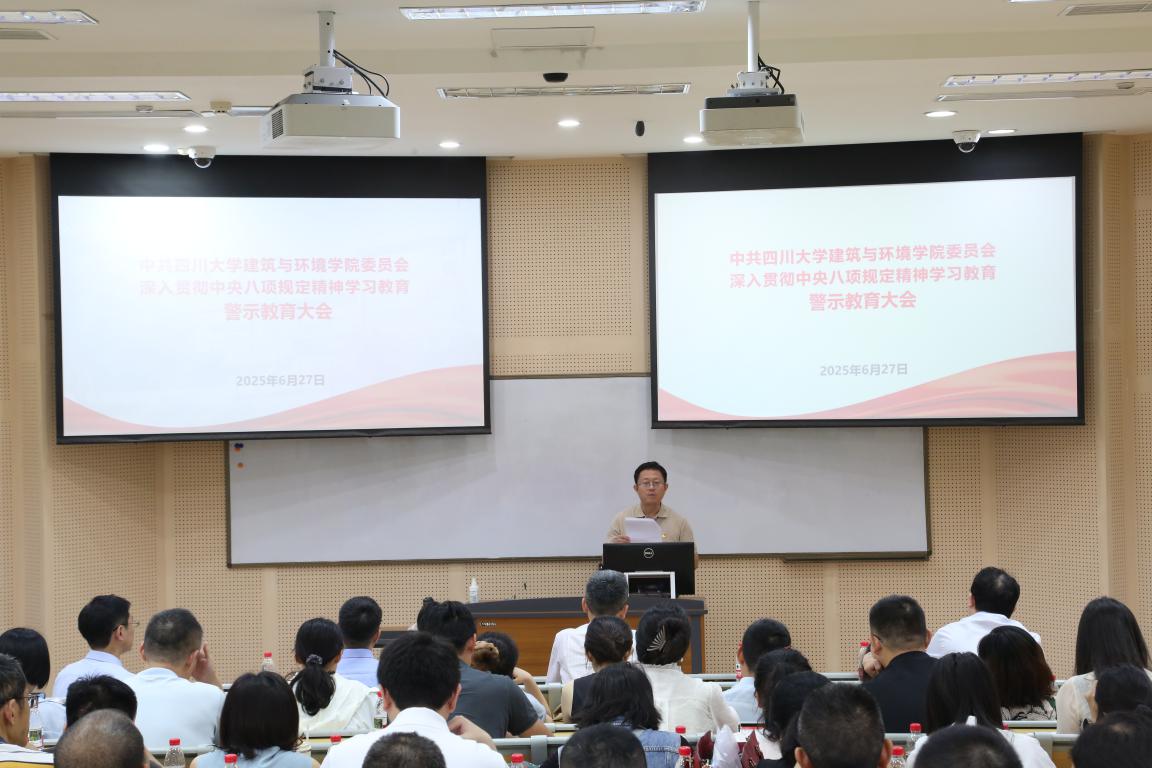按照学校深入贯彻中央八项规定精神学习教育工作要求和学院学习教育实施方案,6月27日,学院在望江校区研究生院一区204教室召开深入贯彻中央八项规定精神学习教育警示教育大会。学院全体教师党员参加会议,会议由学院院长戴峰主持。