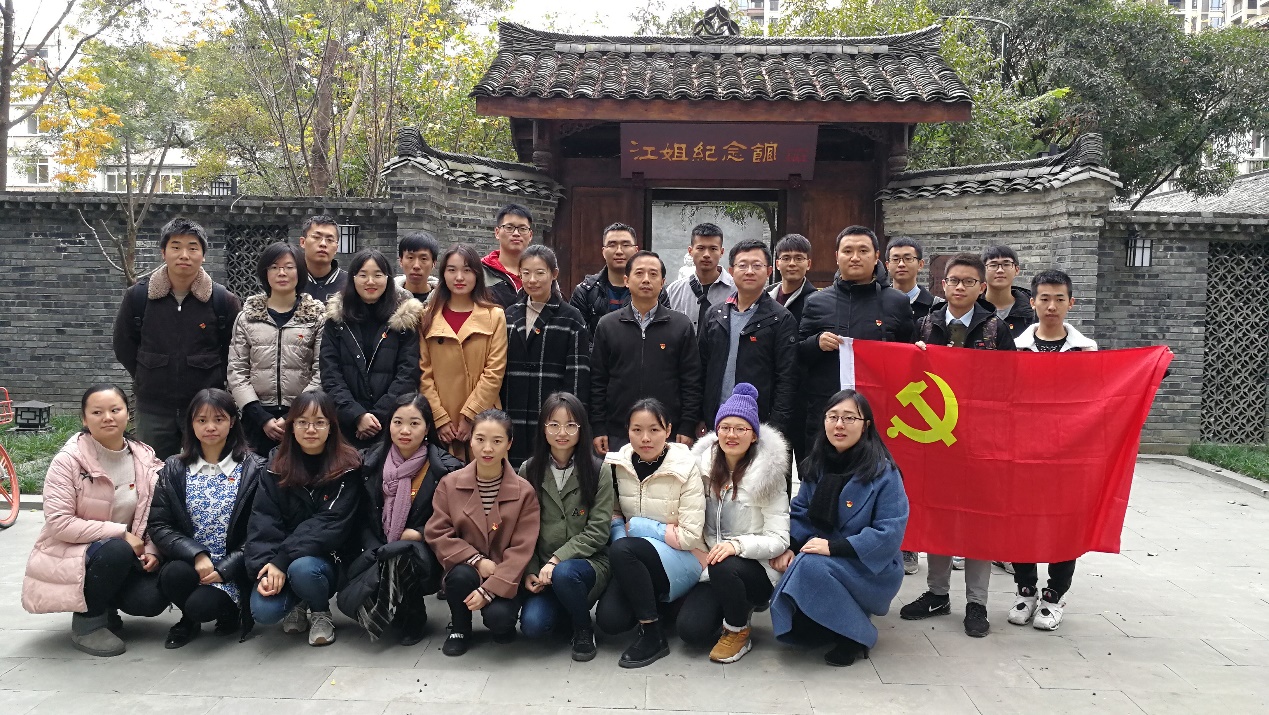 为深入学习贯彻习近平总书记关于“要把红色资源利用好,把红色传统发扬好,把红色基因传承好”的重要指示精神,在广大师生中传承红色基因,继承先烈遗志,弘扬和传承英雄精神和气节,12月5日下午,学院党委书记蒋文涛,副书记孙伯雷带领学院师生党员到江姐纪念馆开展了以“缅怀革命先烈,传承红色精神——纪念江竹筠烈士”为主题的红色教育活动。