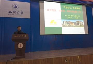 为了更好地贯彻落实中共中央、国务院《关于加强和改进新形势下高校思想政治工作的意见》文件精神,学院党委书记蒋文涛教授于12月22日14:00在江安校区水上报告厅为学院2017级本科生上了一堂题为《不忘初心,牢记使命,做有理想、有本领、有担当的新一代》的思想政治教育课。