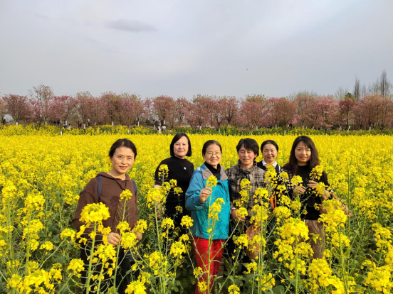 紧张的游戏环节结束,女教工们开始了徒步郊游踏春。在春日暖阳中欣赏繁花似锦,游人如织的盛况,感受国家新农村建设的发展与硕果。她们时而驻足细声交流,时而三五成群拍照合影,时而为发现一处新的景点开怀畅笑……两个小时的徒步郊游,让女教工们彻底放松之余也实现了身心锻炼,她们纷纷表示,日常工作中因为长时间伏案,身体得不到很好的放松,徒步郊游赏春景,工会的安排非常贴心到位。