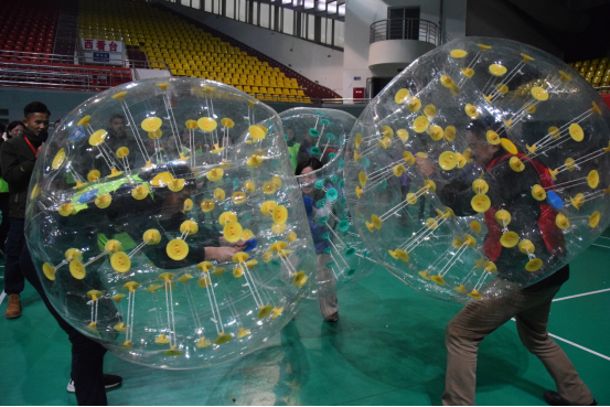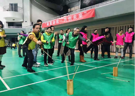 此次活动由学院工会精心组织,由“猜灯谜”、“战鼓齐鸣”、“步步高升”、“激情对对碰”、“目不转睛”、“夹乒乓球”、“踩气球”六个环节组成,将竞技与娱乐结合起来。教职工们被分为6个团队,活动过程高潮迭起,各个团队团结协作,默契配合,在欢乐与激情中完成各项挑战。参与团建活动的教职工都精神抖擞,全力以赴,赢得了在场观众们的阵阵喝彩。