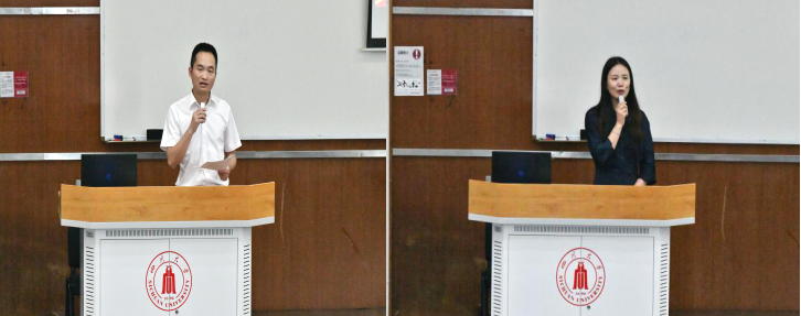 教师代表何传书老师向同学们介绍了学校、学院提供的良好学习、科研条件和优美的生活环境,表达了对同学们的欢迎。她讲道,“种一棵树最好的时间是十年前,其次是现在。”希望同学们永远保持一颗积极进取的心,不断积累本领,迎接突破和蜕变。