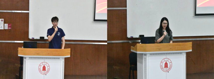 教师代表何传书老师向同学们介绍了学校、学院提供的良好学习、科研条件和优美的生活环境,表达了对同学们的欢迎。她讲道,“种一棵树最好的时间是十年前,其次是现在。”希望同学们永远保持一颗积极进取的心,不断积累本领,迎接突破和蜕变。